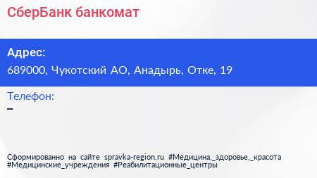 СберБанк, банкомат по адресу 689000, Чукотский АО, Анадырь, Отке, 19 в дальнейшем Организация, размещена в следующих категориях: