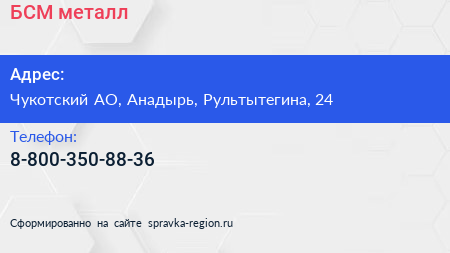 БСМ-металл по адресу Чукотский АО, Анадырь, Рультытегина, 24 в дальнейшем Организация, размещена в следующих категориях:
