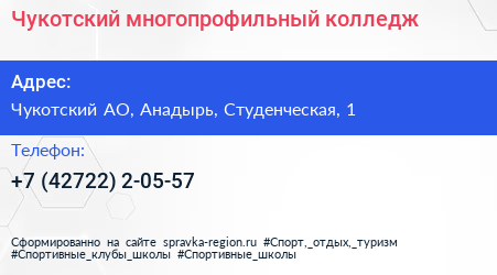 Чукотский многопрофильный колледж по адресу Чукотский АО, Анадырь, Студенческая, 1 в дальнейшем Организация, размещена в следующих категориях: