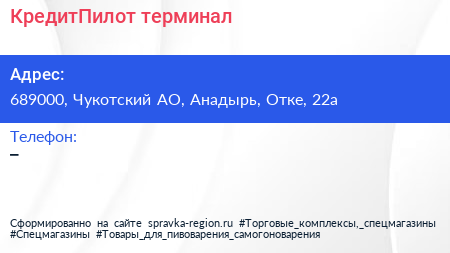КредитПилот, терминал по адресу 689000, Чукотский АО, Анадырь, Отке, 22а в дальнейшем Организация, размещена в следующих категориях: