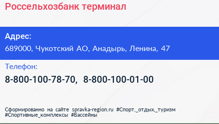 Россельхозбанк, терминал по адресу 689000, Чукотский АО, Анадырь, Ленина, 47 в дальнейшем Организация, размещена в следующих категориях: