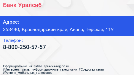 Банк Уралсиб по адресу 353440, Краснодарский край, Анапа, Терская, 119 в дальнейшем Организация, размещена в следующих категориях: