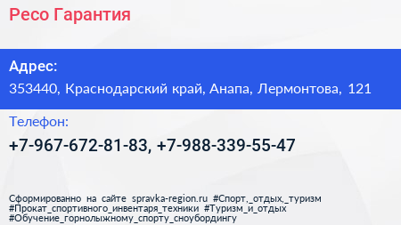 Ресо-Гарантия по адресу 353440, Краснодарский край, Анапа, Лермонтова, 121 в дальнейшем Организация, размещена в следующих категориях: