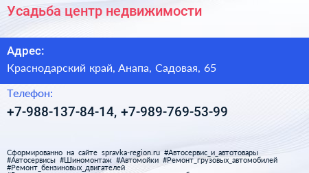 Усадьба, центр недвижимости по адресу Краснодарский край, Анапа, Садовая, 65 в дальнейшем Организация, размещена в следующих категориях: