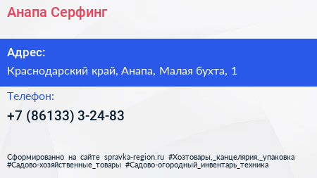 Анапа-Серфинг по адресу Краснодарский край, Анапа, Малая бухта, 1 в дальнейшем Организация, размещена в следующих категориях: