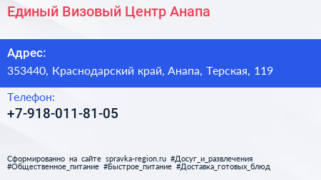 Единый Визовый Центр-Анапа по адресу 353440, Краснодарский край, Анапа, Терская, 119 в дальнейшем Организация, размещена в следующих категориях: