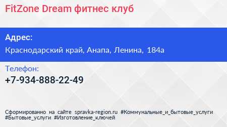 FitZone Dream, фитнес-клуб по адресу Краснодарский край, Анапа, Ленина, 184а в дальнейшем Организация, размещена в следующих категориях: