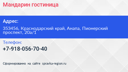 Мандарин, гостиница по адресу 353456, Краснодарский край, Анапа, Пионерский проспект, 20а/1 в дальнейшем Организация, размещена в следующих категориях: