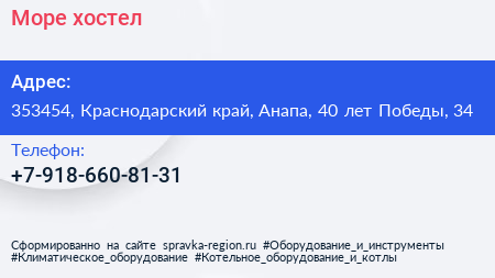 Море, хостел по адресу 353454, Краснодарский край, Анапа, 40 лет Победы, 34 в дальнейшем Организация, размещена в следующих категориях: