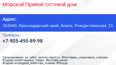 Морской Прибой, гостевой дом по адресу 353440, Краснодарский край, Анапа, Рождественская, 15 в дальнейшем Организация, размещена в следующих категориях: