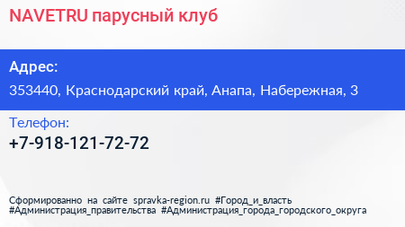NAVETRU, парусный клуб по адресу 353440, Краснодарский край, Анапа, Набережная, 3 в дальнейшем Организация, размещена в следующих категориях: