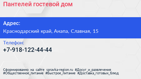 Пантелей, гостевой дом по адресу Краснодарский край, Анапа, Славная, 15 в дальнейшем Организация, размещена в следующих категориях: