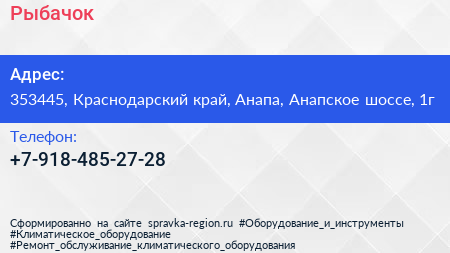 Рыбачок по адресу 353445, Краснодарский край, Анапа, Анапское шоссе, 1г в дальнейшем Организация, размещена в следующих категориях: