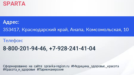 SPARTA по адресу 353417, Краснодарский край, Анапа, Комсомольская, 10 в дальнейшем Организация, размещена в следующих категориях: