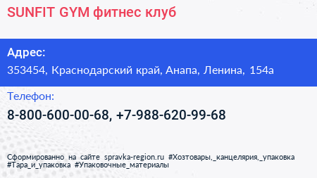 SUNFIT GYM, фитнес-клуб по адресу 353454, Краснодарский край, Анапа, Ленина, 154а в дальнейшем Организация, размещена в следующих категориях: