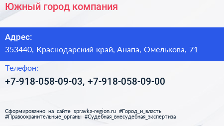 Южный город, компания по адресу 353440, Краснодарский край, Анапа, Омелькова, 71 в дальнейшем Организация, размещена в следующих категориях: