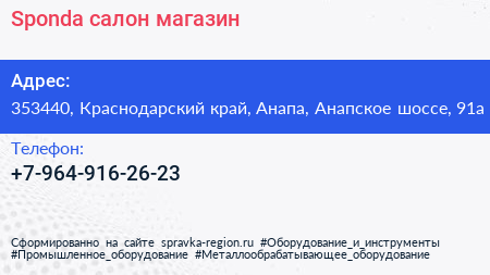 Sponda, салон-магазин по адресу 353440, Краснодарский край, Анапа, Анапское шоссе, 91а в дальнейшем Организация, размещена в следующих категориях: