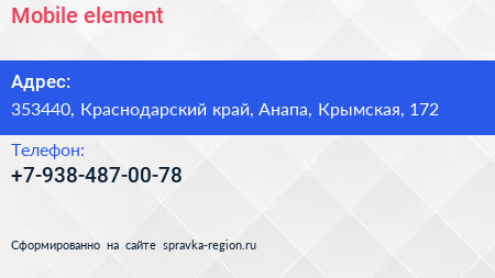 Mobile element по адресу 353440, Краснодарский край, Анапа, Крымская, 172 в дальнейшем Организация, размещена в следующих категориях: