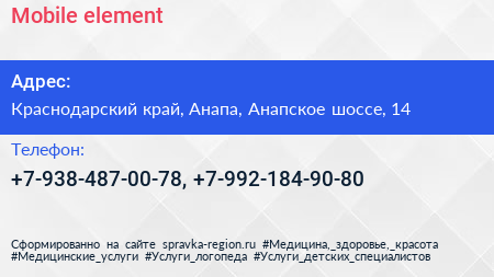 Mobile element по адресу Краснодарский край, Анапа, Анапское шоссе, 14 в дальнейшем Организация, размещена в следующих категориях: