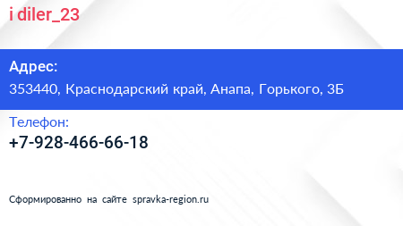 i.diler_23 по адресу 353440, Краснодарский край, Анапа, Горького, 3Б в дальнейшем Организация, размещена в следующих категориях: