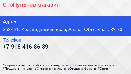 СтоПультов, магазин по адресу 353451, Краснодарский край, Анапа, Объездная, 39 к3 в дальнейшем Организация, размещена в следующих категориях: