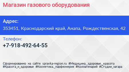 Магазин газового оборудования по адресу 353451, Краснодарский край, Анапа, Рождественская, 42 в дальнейшем Организация, размещена в следующих категориях: