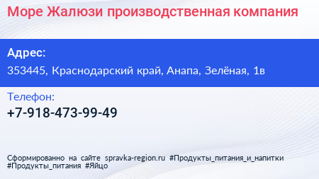 Море Жалюзи, производственная компания по адресу 353445, Краснодарский край, Анапа, Зелёная, 1в в дальнейшем Организация, размещена в следующих категориях: