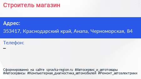 Строитель, магазин по адресу 353417, Краснодарский край, Анапа, Черноморская, 84 в дальнейшем Организация, размещена в следующих категориях:
