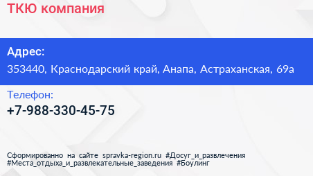 ТКЮ, компания по адресу 353440, Краснодарский край, Анапа, Астраханская, 69а в дальнейшем Организация, размещена в следующих категориях:
