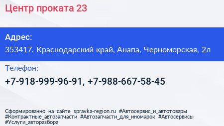 Центр проката 23 по адресу 353417, Краснодарский край, Анапа, Черноморская, 2л в дальнейшем Организация, размещена в следующих категориях: