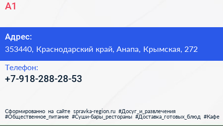 А1 по адресу 353440, Краснодарский край, Анапа, Крымская, 272 в дальнейшем Организация, размещена в следующих категориях: