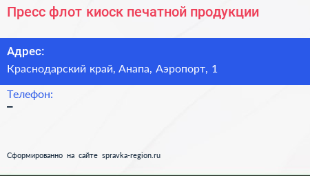 Пресс флот, киоск печатной продукции по адресу Краснодарский край, Анапа, Аэропорт, 1 в дальнейшем Организация, размещена в следующих категориях: