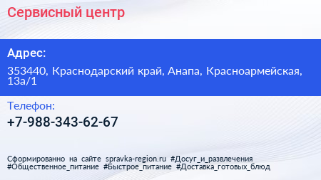 Сервисный центр по адресу 353440, Краснодарский край, Анапа, Красноармейская, 13а/1 в дальнейшем Организация, размещена в следующих категориях: