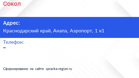 Сокол по адресу Краснодарский край, Анапа, Аэропорт, 1 к1 в дальнейшем Организация, размещена в следующих категориях: