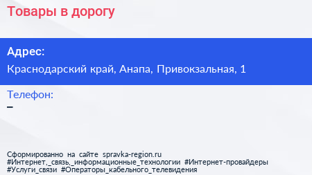 Товары в дорогу по адресу Краснодарский край, Анапа, Привокзальная, 1 в дальнейшем Организация, размещена в следующих категориях: