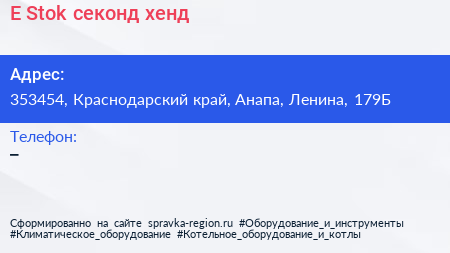 E-Stok, секонд-хенд по адресу 353454, Краснодарский край, Анапа, Ленина, 179Б в дальнейшем Организация, размещена в следующих категориях: