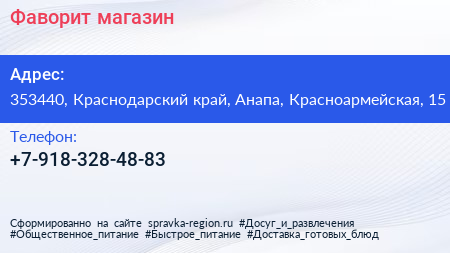 Фаворит, магазин по адресу 353440, Краснодарский край, Анапа, Красноармейская, 15 в дальнейшем Организация, размещена в следующих категориях: