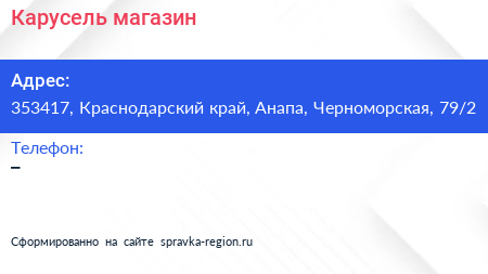 Карусель, магазин по адресу 353417, Краснодарский край, Анапа, Черноморская, 79/2 в дальнейшем Организация, размещена в следующих категориях: