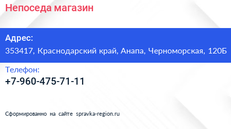 Непоседа, магазин по адресу 353417, Краснодарский край, Анапа, Черноморская, 120Б в дальнейшем Организация, размещена в следующих категориях: