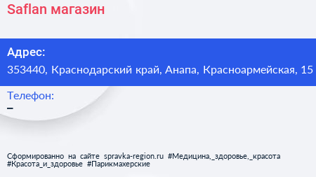 Saflan, магазин по адресу 353440, Краснодарский край, Анапа, Красноармейская, 15 в дальнейшем Организация, размещена в следующих категориях: