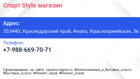 Спорт Style, магазин по адресу 353440, Краснодарский край, Анапа, Красноармейская, 3в в дальнейшем Организация, размещена в следующих категориях: