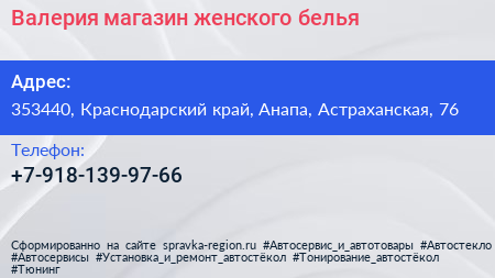 Валерия, магазин женского белья по адресу 353440, Краснодарский край, Анапа, Астраханская, 76 в дальнейшем Организация, размещена в следующих категориях: