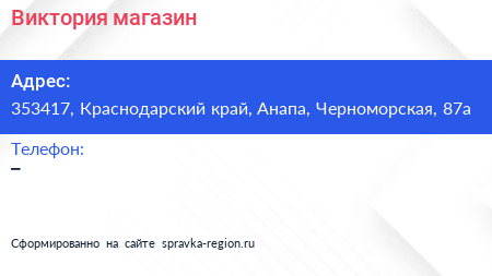 Виктория, магазин по адресу 353417, Краснодарский край, Анапа, Черноморская, 87а в дальнейшем Организация, размещена в следующих категориях: