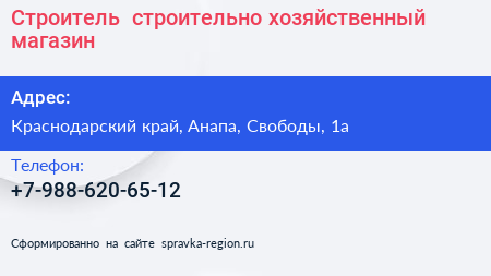 Строитель+, строительно-хозяйственный магазин по адресу Краснодарский край, Анапа, Свободы, 1а в дальнейшем Организация, размещена в следующих категориях: