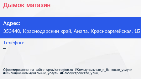 Дымок, магазин по адресу 353440, Краснодарский край, Анапа, Красноармейская, 1Б в дальнейшем Организация, размещена в следующих категориях: