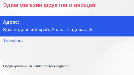 Эдем, магазин фруктов и овощей по адресу Краснодарский край, Анапа, Садовая, 2г в дальнейшем Организация, размещена в следующих категориях: