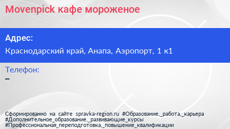 Movenpick, кафе-мороженое по адресу Краснодарский край, Анапа, Аэропорт, 1 к1 в дальнейшем Организация, размещена в следующих категориях: