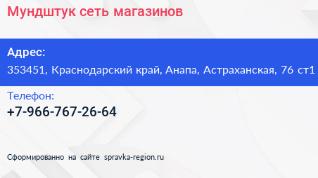 Мундштук, сеть магазинов по адресу 353451, Краснодарский край, Анапа, Астраханская, 76 ст1 в дальнейшем Организация, размещена в следующих категориях: