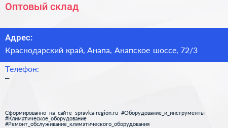 Оптовый склад по адресу Краснодарский край, Анапа, Анапское шоссе, 72/3 в дальнейшем Организация, размещена в следующих категориях: