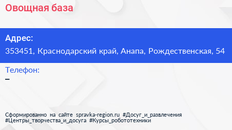 Овощная база по адресу 353451, Краснодарский край, Анапа, Рождественская, 54 в дальнейшем Организация, размещена в следующих категориях: